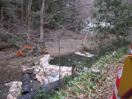鞍馬川の二ノ瀬付近の様子です。工事が進んでいます。