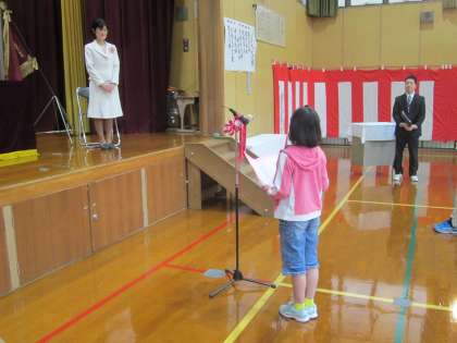 板垣晶子養護教諭の着任式です。(児童には,『保健室の新しい先生です。』と紹介しました。)