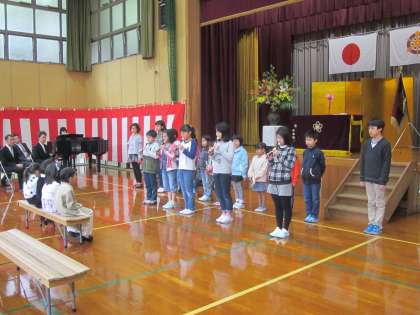 鍵盤ハーモニカやリコーダーの演奏の頃,1年生も随分リラックスしていました。最後,拍手で退場しました。その後,教室で担任の先生とお話をしました。