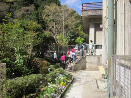 また明日も元気に登校しましょうね。お迎えの人は,宿題かな?