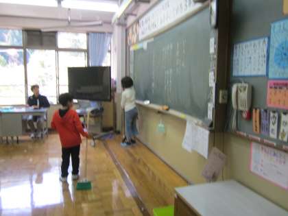 各教室には『役割分担表』があるようです。3年生は6年生に何か教わっていました。