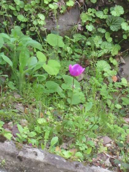 石段にも花一輪や綿毛がありました。