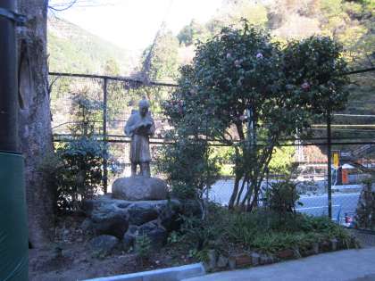 二宮翁のそばにはきれいな花が咲いています。