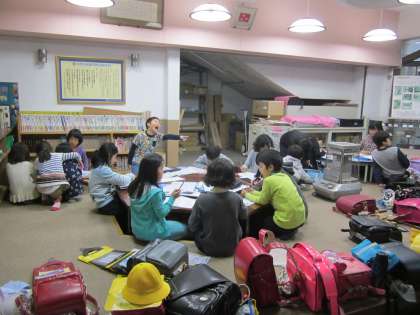 各自で宿題をしたり室内遊びをしたりして待っています。