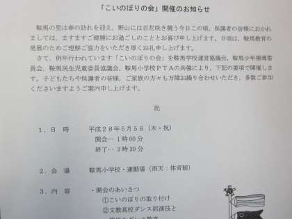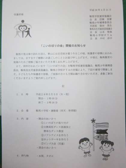 【『こいのぼりの会』についてのお知らせプリント】を,本日配布いたしました。