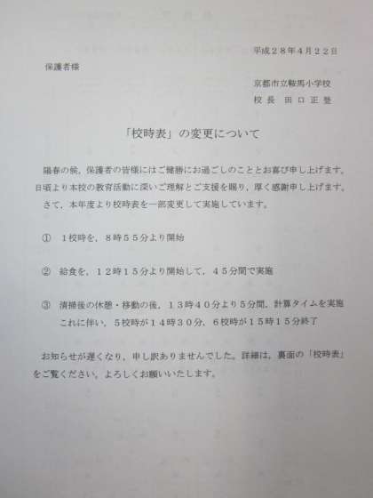 「校時表」の変更についてのお知らせ