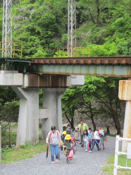 手をつないだり腕を組んだりして,仲良く登校しています。