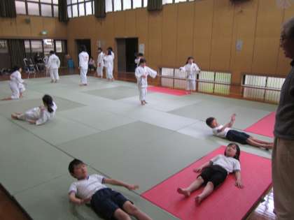 まずは畳出しと準備運動,受け身の練習です。