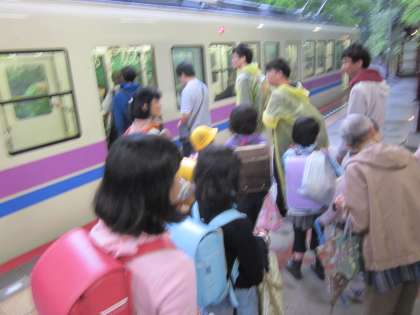 雨に濡れた青もみじが,緑のトンネルのようでした。