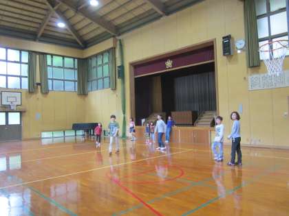 下校する児童や体育館で遊ぶ児童,学び教室を続ける児童とに分かれました。