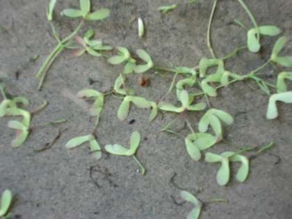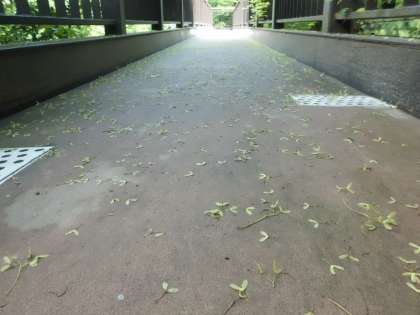 歩道橋の下にプロペラのような形の種がたくさん落ちていました。すぐそばにあるモミジの種です。この季節に種を落とすのですね。