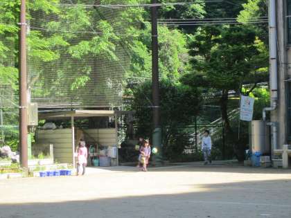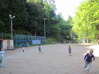 運動場で何気なく朝の運動をする…。体にいいことですね。