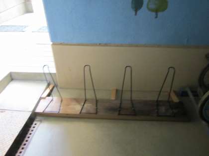 昨日,管理用務員さんと事務職員さんにこしらえていただきました『一輪車置き台』です。