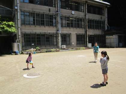 水たまりがほとんどなくなりました。みんな運動場で遊びます。