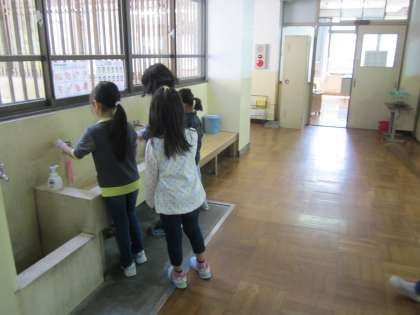 掃除が終わった人から『うがい・手洗い』をします。