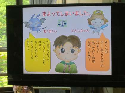 2・3年生では,『して良いことと悪いこと』という題でお話がありました。