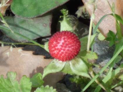 貴船口駅に向かう小道の脇に小さくて赤い実がちらほら・・・。これはヘビイチゴです。東南アジアや日本が原産で,別名「毒いちご」とも呼ばれますが,無毒です。これにも花言葉があります。「可憐」だそうです。
