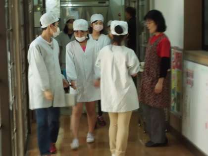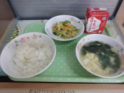 今日の給食は,麦ごはん・牛乳・かきたまじる・鶏肉とピーマンのごまいためです。おいしくいただきましょう!!