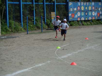 その次はリレーです。みんな一生懸命走っています。応援も盛り上がっていました。