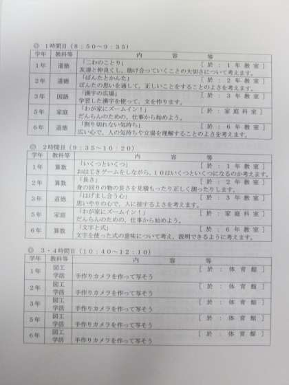 休日参観のプリントです。どうぞよろしくお願いいたします。