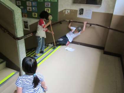 階段のほうきや雑巾がけ,みんな立派です。