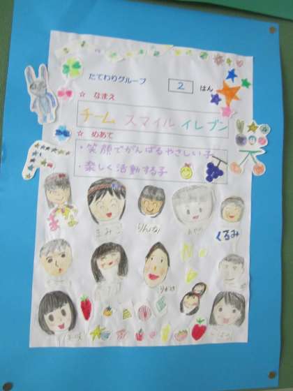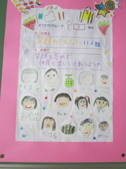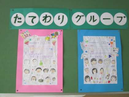 異年齢グループでの活動のめあてを,掲示板に貼っています。