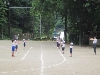 準備体操は2年生がリードしてくれます。1年生も声を出しています。