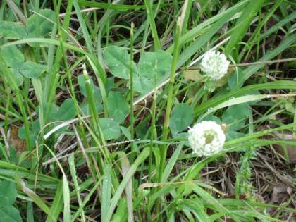 たくさんの雑草に交じって少しだけ咲いていました。「シロツメクサ」です。