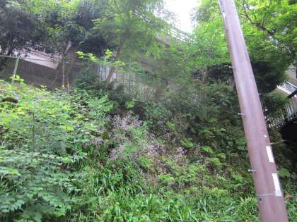 体育館下の掲示幕『スピードおとせ』のそばに生えているユキノシタも,結構伸びてきていました。