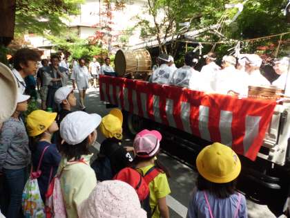 今日は貴船祭。給食後,学校を出発してバスに乗り,貴船へ。しばらく待っているとおみこしがやってきました。担ぎ手の方々が勇ましくおみこしを揺らし,一気に盛り上がります。おみこしの後を歩き,奥社で拝礼しました。みんな,おみこしを興味深く見つめたり学校代表の6年生に合わせて拝礼したりと,地域の伝統行事について学ぶことができました。とても充実した時間でした。