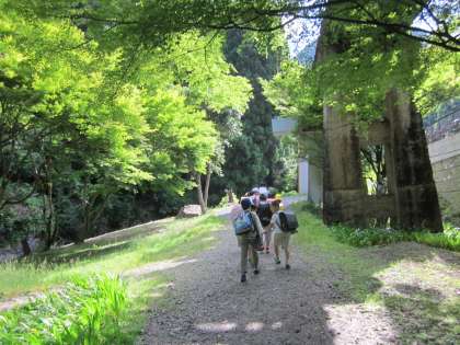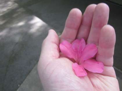 緑のトンネルをくぐります。花びらのプレゼントをもらいました。