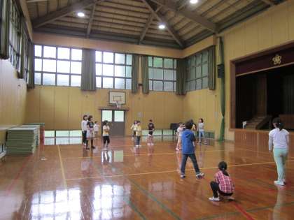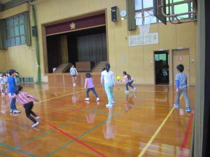 今朝は晴れていますが,体育館で遊んでいます。