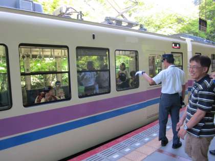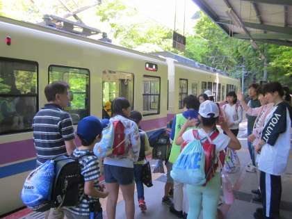 貴船口駅で混み合う時は,観光客の方に迷惑がかからないようにしましょうね。