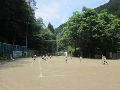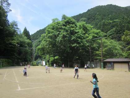 中間休みに鬼ごっこをしています。教育実習の先生も加わってくださいました。