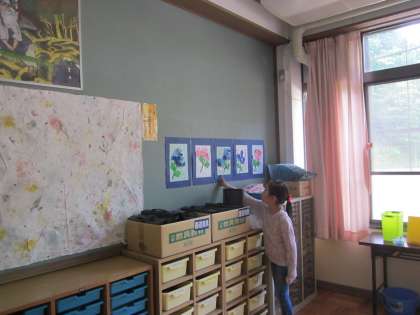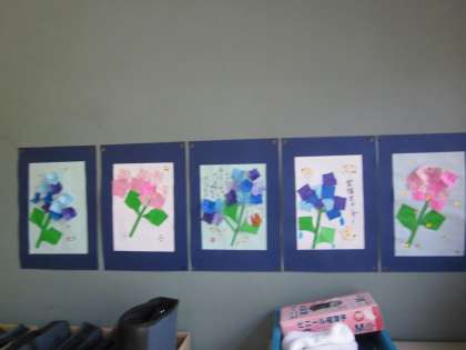 アジサイの作品を仕上げて持ってきてくれた児童がいます。きれいですね。