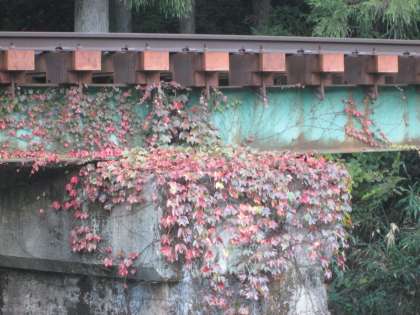 叡電陸橋下の蔦,秋ですとご覧のような感じでした。