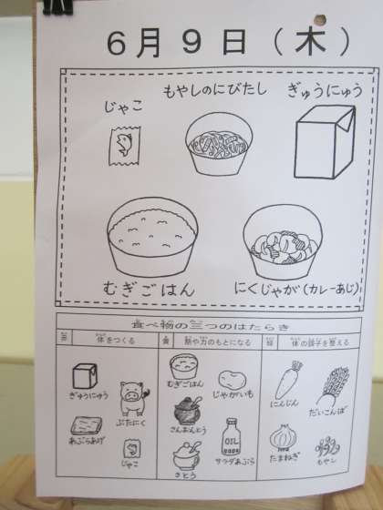 今日の給食は,麦ごはん・牛乳・肉じゃが(カレー味)・もやしの煮びたし・じゃこです。