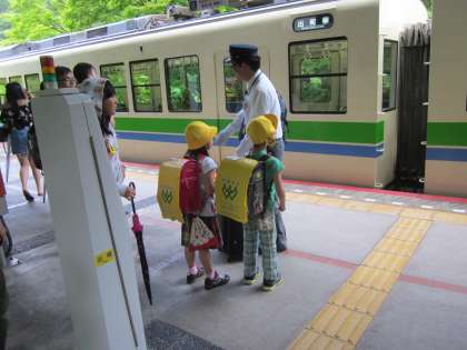貴船口駅では,いつも駅員さんが本校児童の安全・安心にお心遣いをいただいております。