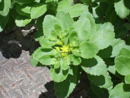 運動場の片隅に黄色い星形の花を見つけました。「キリンソウ」です。名前の由来は中国の想像上の生き物「麒麟」からくる説や,黄色の輪のように見えることから「黄輪」からという説があるそうです。花言葉は「警戒」。