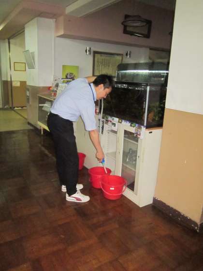 きれいになった水槽,登校後の鞍馬っ子は気付いてくれるかな?