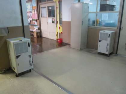 階段や廊下の“結露防止”のため,朝から除湿機を稼働させています。