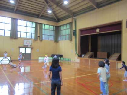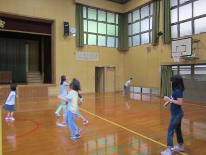朝はお部屋でゆっくり過ごす児童もいますが,思い切りドッジボールを楽しむ児童もいます。怪我をしないように…。