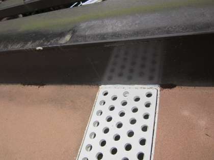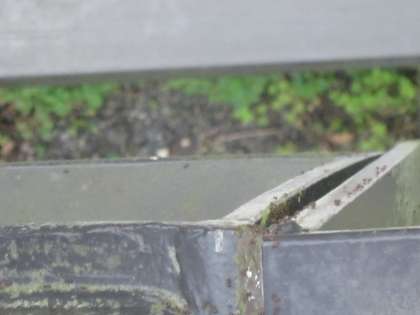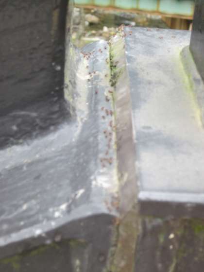 横断歩道橋でアリが群れて固まっていました。その先は鞍馬川側の橋脚を降りています。