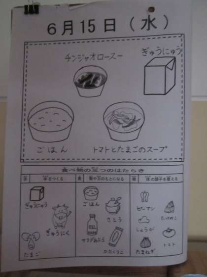 今日の給食は,ごはん・牛乳・青椒肉絲(チンジャオロースー)・トマトと卵のスープです。