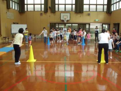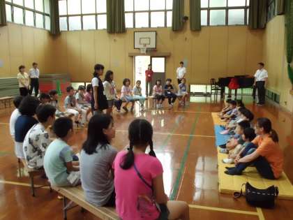 3時間目は,いよいよ「鞍馬お楽しみ交流会」です。鞍馬山保育園の子どもたちと歌を歌ったりゲームをしたりして,とても楽しい時間をすごしました。