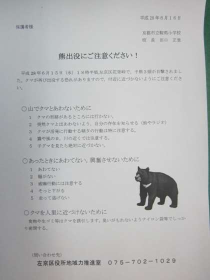 クマ出没情報(鞍馬学区 花背峠)