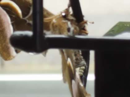 じっとしていたシンジュサン。ふと見ると卵を産み始めました。大きさや色はカブトムシの卵に似ています。並べて産卵するんですね。いつごろ孵化するのでしょうか。幼虫も毒は無いそうですが・・・。