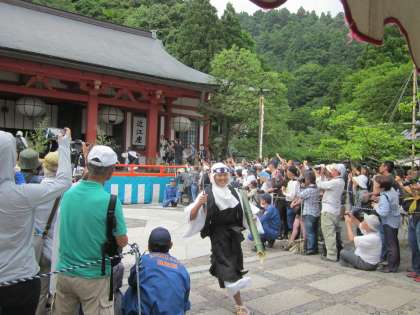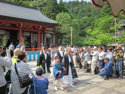 (竹を伐る山法師姿の皆様は,数日前から心も体も清めておられたのだそうです。)