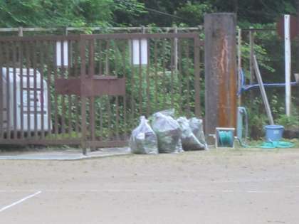 不安定なお天気の中,管理用務員さんが草引きをしています。