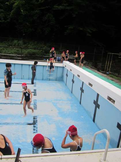 『学校のプールってでかいな〜。』